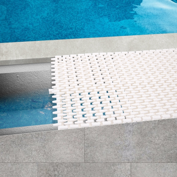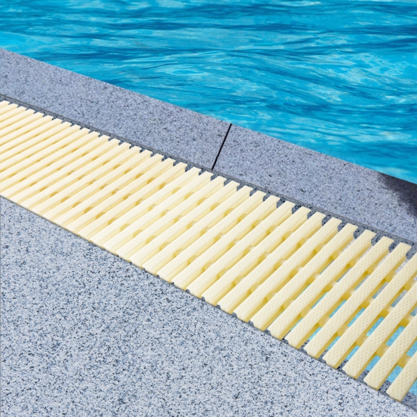 Pool grating is installed on the edge of the swimming pool to drain the water that overflows from the pool. The surface of the grating has anti slip treatment. There are many protruding points that can increase friction and prevent slipping effectively. They can be rotated and bent to adapt to different shapes of swimming pools.