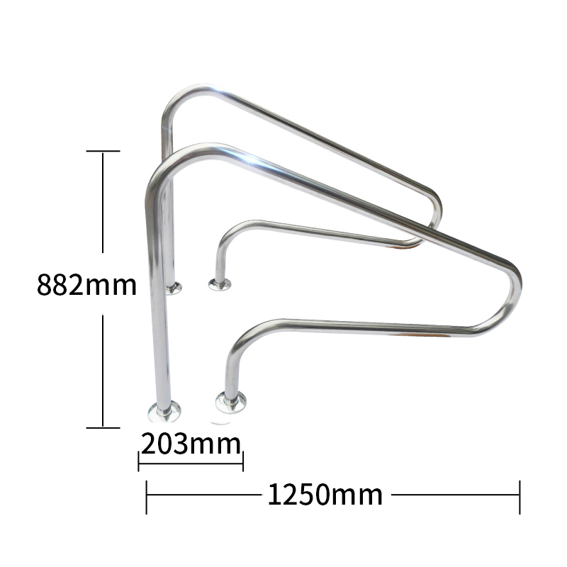 Swimming Pool Exit Handrail ARG Series polished AISI-304 or Aisl-316 stainless (Φ42mm) pipe. Both anchor and flange installations are available.