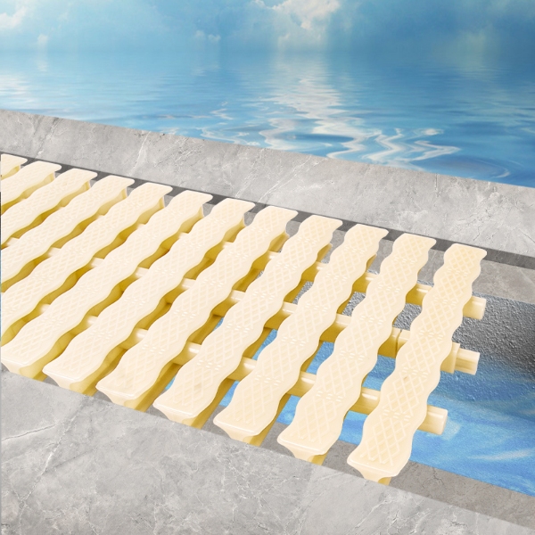 Pool Grating Ripple Type is installed on the edge of the swimming pool to drain the water that overflows from the pool. The surface of the grating has anti slip treatment. There are many protruding points that can increase friction and prevent slipping effectively. They can be rotated and bent to adapt to different shapes of swimming pools.