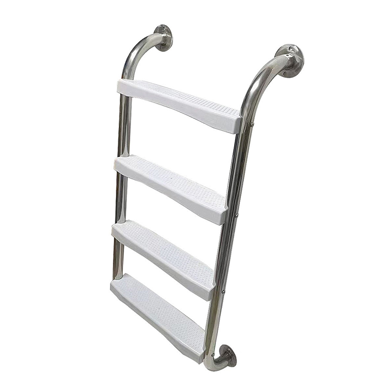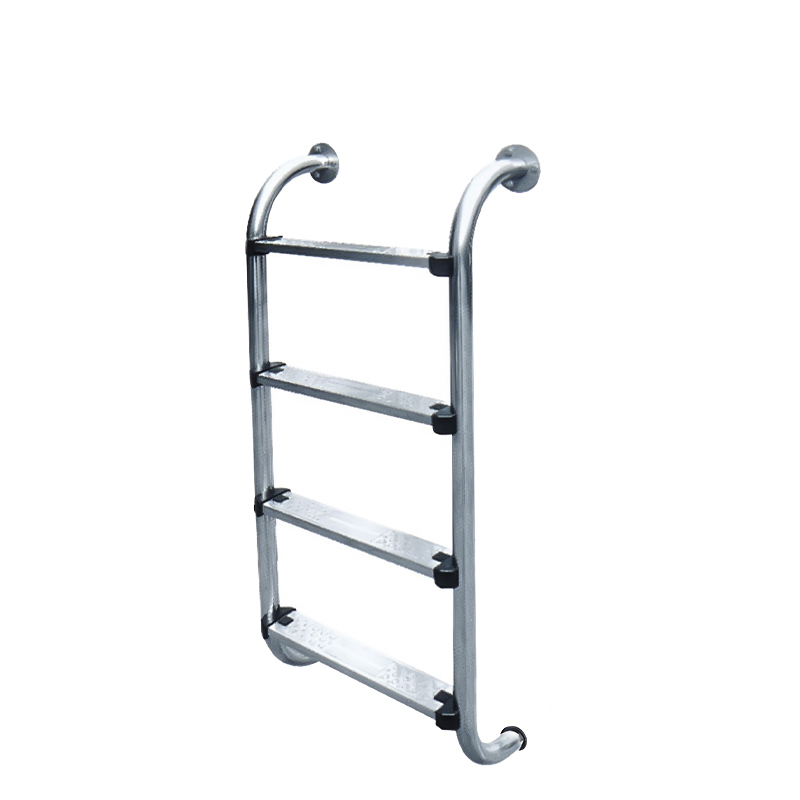 The ladder is designed with steps or rungs that facilitate easy climbing. Additionally, these steps are often textured or ribbed to provide a non-slip surface for enhanced safety. Moreover, the overall design may include handrails or grips for stability during entry and exit.